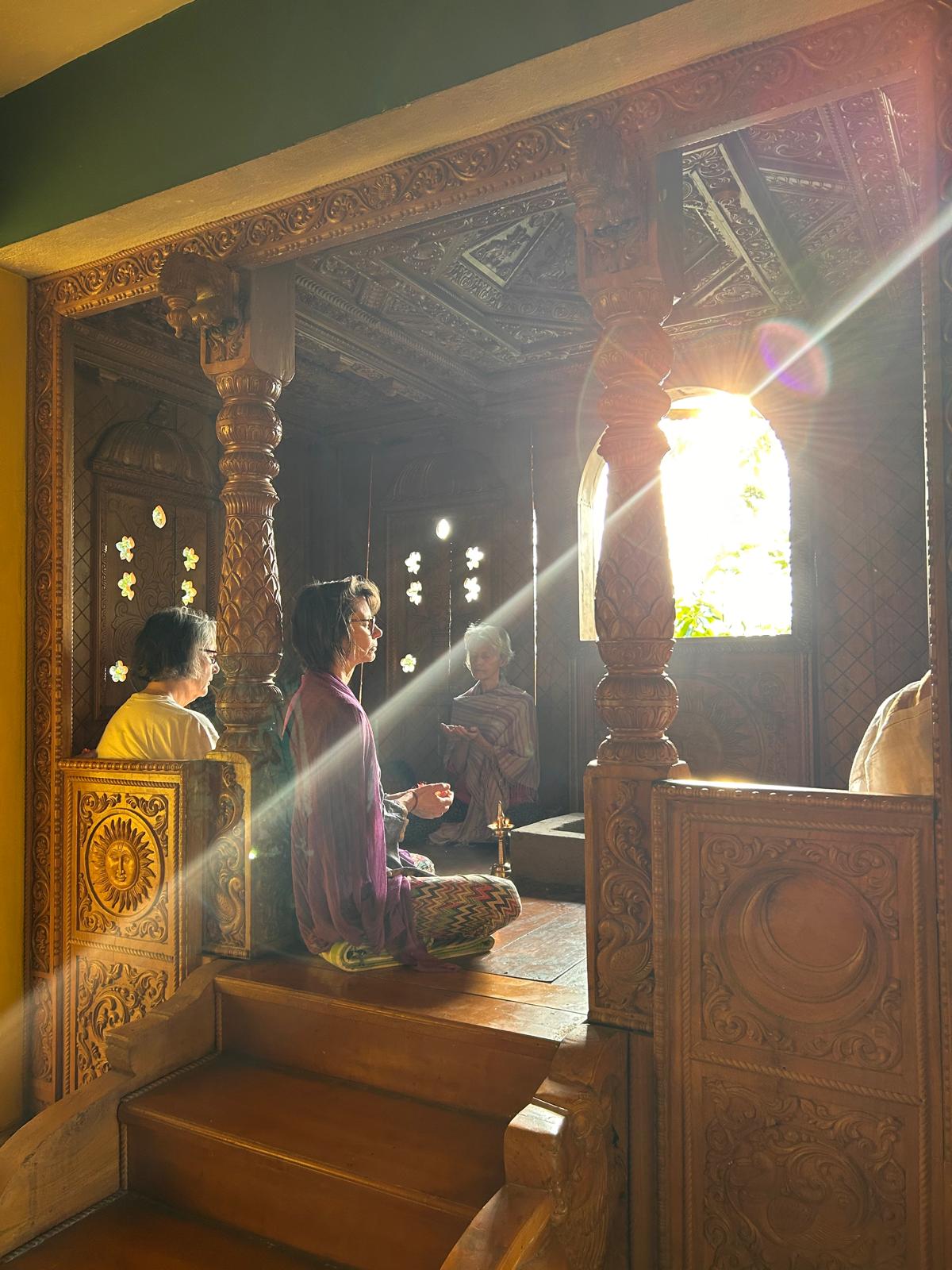 Les poojas auxquelles j’ai assisté m’ont profondément touchée. Un pooja, dans la tradition hindoue, est un rituel d’offrande, de prière et de présence. Ce n’est pas seulement joli ou exotique. C’est une manière d’entrer en relation avec une intelligence du vivant plus vaste que soi.